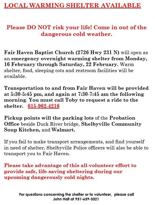 Fair Haven Baptist Church Warming Shelter